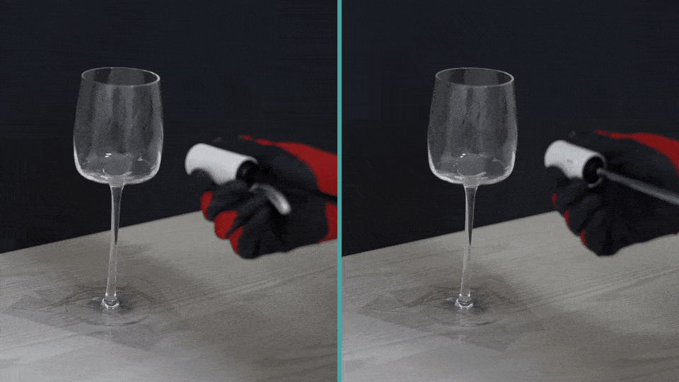 安全ロックがない傘は、強い力で勢いよく戻ることがあります。その衝撃は、ガラスのコップを割るほど強力です。ワンタッチ式の折りたたみ日傘を選ぶ際は、ケガを防ぐためにも、安全ロック付きのものをお選びください。