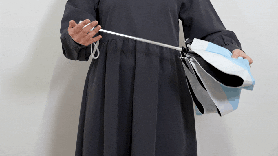 従来のジャンプ傘で見られる「急な飛び出し」や「逆戻り」による事故を防ぐ設計で、安心してお使いいただけます。軽い力でスムーズに操作できるため、力の弱い方やお年寄りにも配慮された設計です。