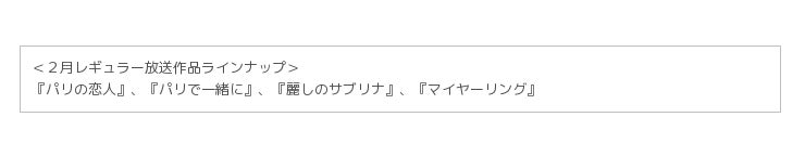 【STAR2 字幕版】2月11日(祝・月)〜 2月15日(金)午前 連日放送 /2月17日(日)午前10:45〜 一挙放送 (全5作品)