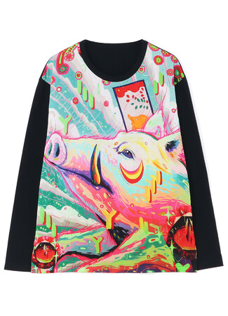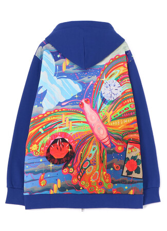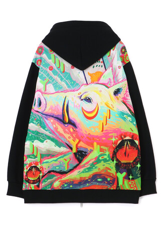 ゆかりの地、奈良県の鹿を題材にした「ナラシカ」シリーズの配色と構図をベースに、縁起物である「猪」「鹿」「蝶」の3種のモチーフが描かれた笹田氏の作品を、Ground Yならではのグラフィックとしてフーディー、カットソー、トートバッグに落とし込んだ、新春を祝うにふさわしい華やかなコレクションです。