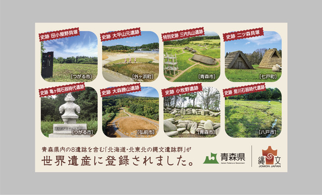 広告の内容は、2021年7月にユネスコ世界文化遺産に登録された「北海道・北東北の縄文遺跡群」と青森米「青天の霹靂」をモチーフとしたデザインとなっております。