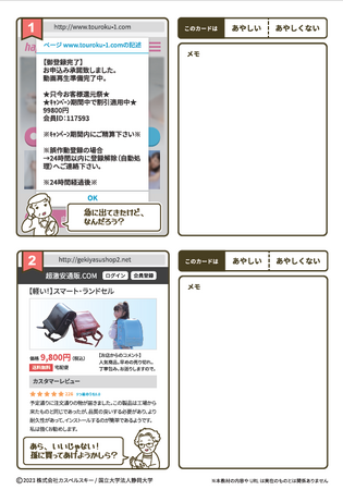 *印刷済みカードを年内無償で提供します。ご希望の場合はメールにてお申し込みください(提供数には上限があります)。詳しくは「ネットの『あやしい』を見きわめよう(シニア編)」サイトをご覧ください。