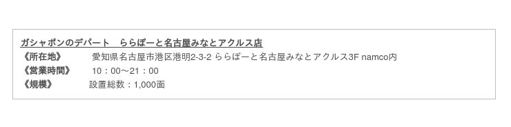 株式会社バンダイナムコアミューズメントは、新業態のカプセルトイ専門店『ガシャポンのデパート』を、2020年10月9日(金)に「ららぽーと名古屋みなとアクルス」(愛知県名古屋市)へオープンいたします。2020年8月にオープンした横浜店・博多店に続き、今後はバンダイナムコアミューズメントの運営する施設内への展開を進めていきます。