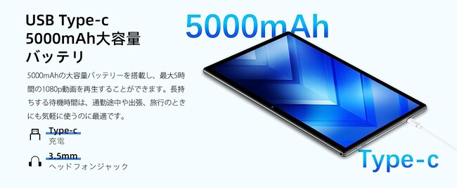 【超高速WIFI6&長持ち大容量バッテリー】 2.4G / 5GデュアルバンドWiFi接続、タブレットのプロフェッショナルWiFiバージョンをサポートし、さまざまな接続方法に適応します。さらに、5000mAhの大容量バッテリーを搭載し、最大5時間の1080p動画を再生することができます。長持ちする待機時間は、通勤途中や出張、旅行のときにも気軽に使うのに最適です。