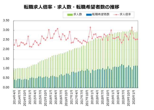 転職サービス「doda(デューダ)」 2020年3月 転職求人倍率 2.54倍(前月比+0.02ポイント) 〜求人数・転職希望者数ともに微増。新型コロナウイルス感染症の影響により転職活動が長期化〜