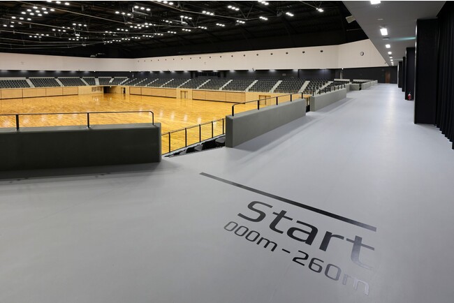「メインアリーナ」は、バスケットボール3面が確保できる広さがあり各種スポーツ大会やイベントでの利用が可能です。2F席の周りには、全長260mのランニングコースも設置しているため、選手のウォーミングアップ場所としても利用が可能です。観覧席は約5,000席(固定式・可動式・専用車いす席含む)あるため、プロスポーツの興行も可能です。