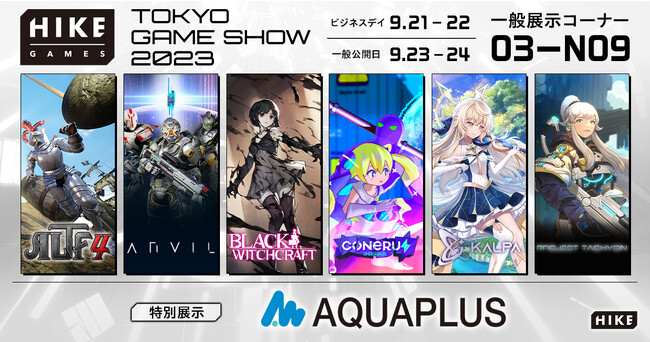 株式会社HIKE(本社:東京都新宿区、代表取締役:三上政高、以下「HIKE」)は、2023年9月21日(木)〜2022年9月24日(日)に幕張メッセにて開催される「東京ゲームショウ2023(TGS2023)」へ出展いたします。HIKEブースでは、グループ会社「アクアプラス」の特別展示として、『モノクロームメビウス』の試遊コーナー、作品イラストのパネルを設置します。HIKE GAMESの出展タイトルでは、昨年に開発を発表して大きな話題となった「亜空間こねる」の2Dアクションプラットフォーム『CONERU -DIMENSION GIRL-』のプレイアブルデモのほか、『ANVIL』のSteam版、『BLACK WITCHCRAFT』『ALTF4』のNintendo Switch(TM)移植版プレイアブルデモなどをご体験頂けます。人気ゲーム実況者のはつめさんによるスペシャル配信も実施します。