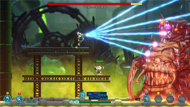2024年リリース予定。ARIA CHRONICLEを開発した「STUDIO N9」の新作タイトルです。本作品は時間を飛び越えることのできる特殊エージェントが、来たる未来の災害を止めるために過去に回帰しながら巨大な敵と戦闘を行うローグライト・プラットフォーマーシューティングゲームです。