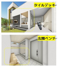 3)玄関ベンチやタイルデッキなど「地域コミュニケーション」の場をつくり出す空間を紹介!住民同士の交流や連携が促進され、地域の活性化にも繋がります!