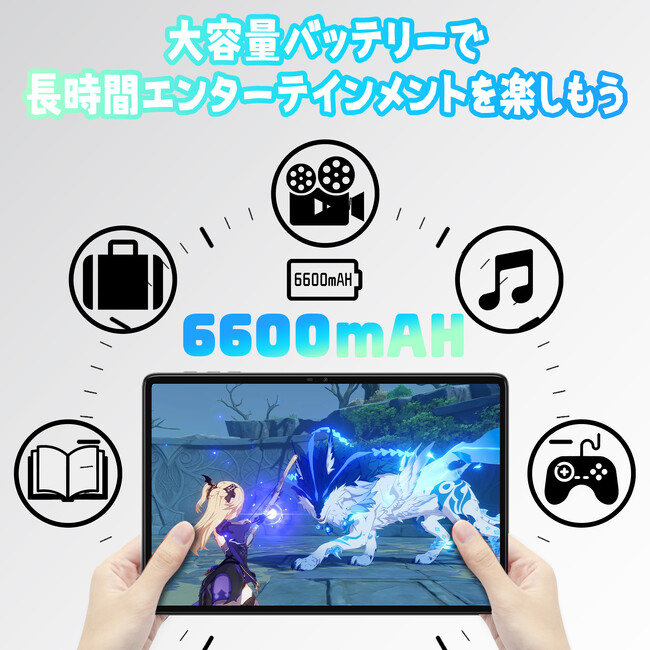 【10.1インチ IPS 大画面 & 6600mAh+Type-C充電】