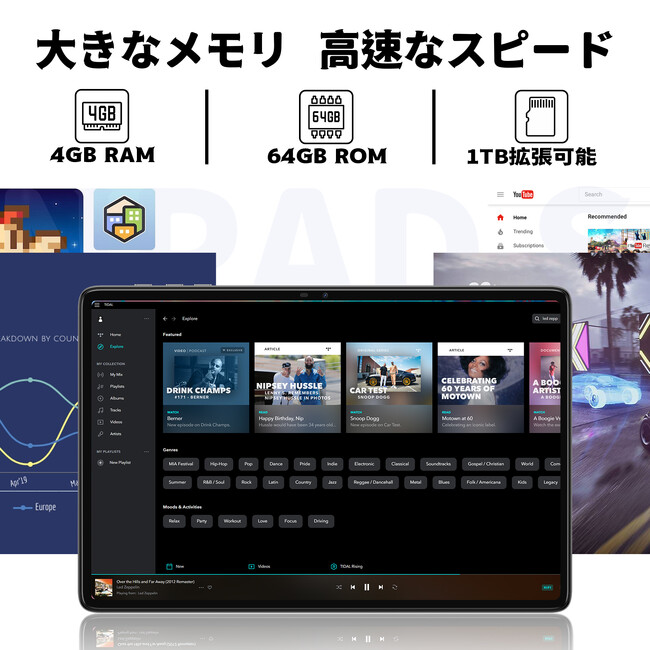 【MTK 8コア CPU & 4GB RAM + 64GB ROM + 1TB拡張】
