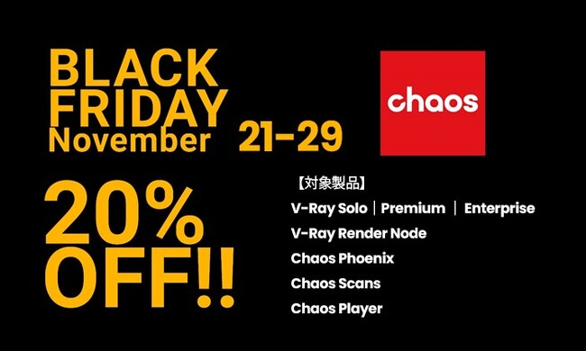 Chaos社製品、ブラックフライデー20%OFFキャンペーン開催のお知らせ