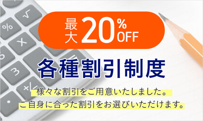 最大20%OFF!他校乗換割引や家族割引など、各種割引制度を設けております。