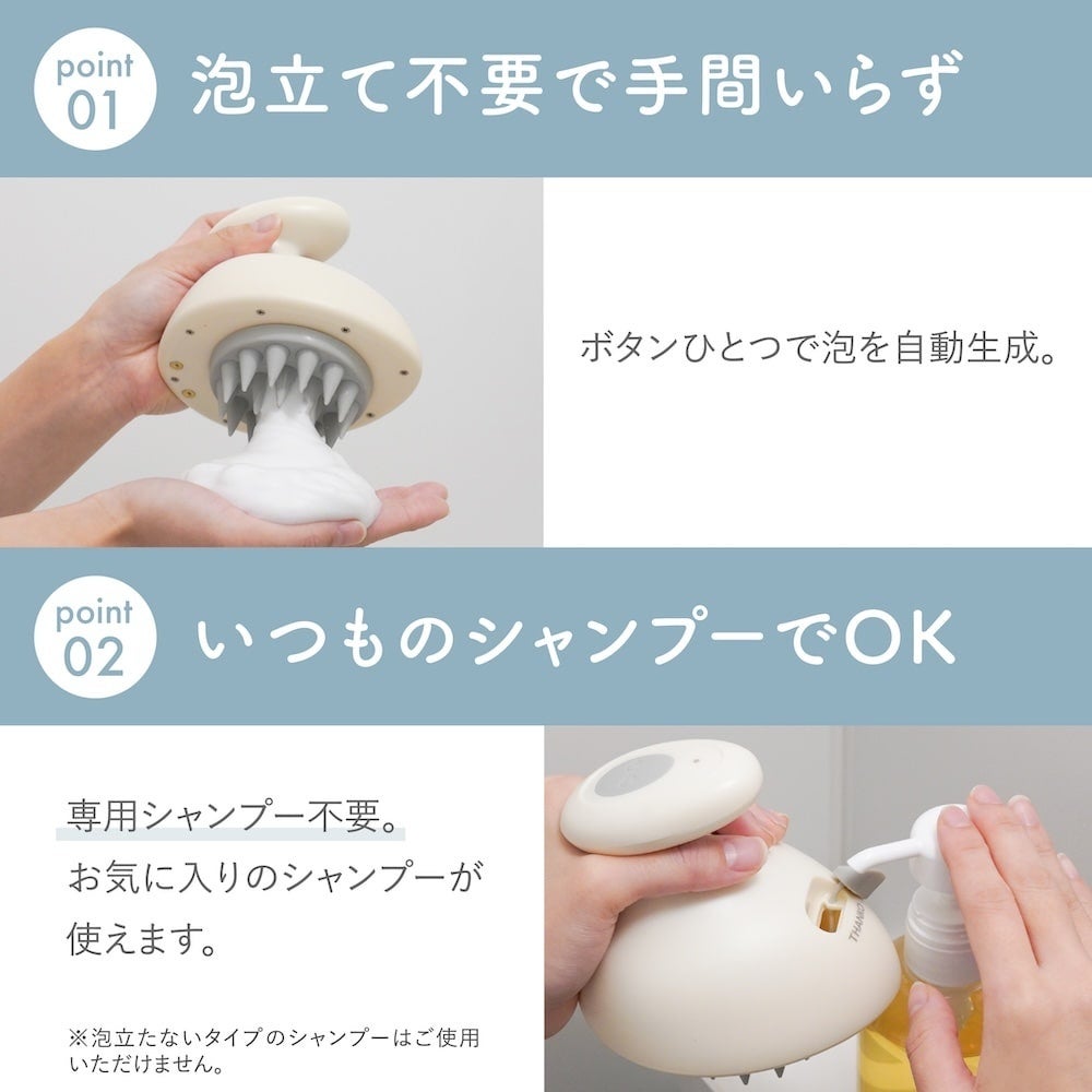 本製品は、シャンプーの自動泡立て機能と頭皮ケアを一台に集約した、電動スカルプブラシです。