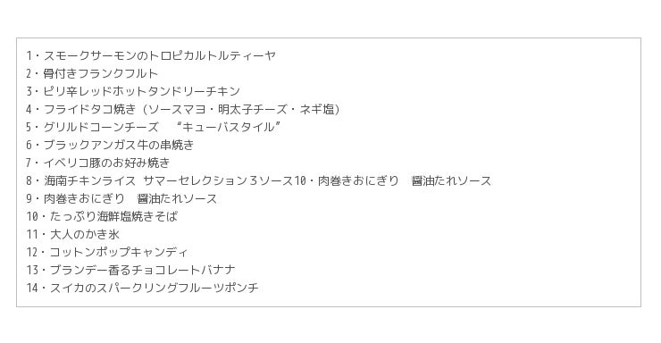 「豪華屋台メニュー」&「世界の祭り料理」が食べ放題!ラムネやビールも飲み放題!