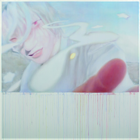 私の作品の中に繰り返し描かれる、制作のプロセスの中で具体化される架空の人物は、自身のノスタルジーやエモーショナルな感情の中に鑑賞者が入り込める余地を作るための、重要なモチーフの一つです。 この作品では、現代を生きる若者というキャラクターを設定し、「個人主義的で、様々な価値観にフラットであり、何にも属さないような、あるいはあらゆる境界を横断できる」という、私がZ世代以降の若者に対し感じる空気感を、ポジティブな解釈として表現したいと思いました。