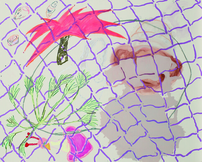 この作品を描いているとき、どのように着地するのかと悩んだこともありました。ですが最後は楽しく描きあげることができました。自分のなかでしっくりくる色の組み合わせやかたちを合わせることができたり、気持ちよく線をひくことのできた作品になったと思います。