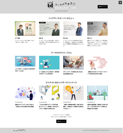 生活者起点のマーケティング支援を行う株式会社ネオマーケティング(本社:東京都渋谷区、代表取締役:橋本光伸)では、マーケティングに関わるすべてのビジネスパーソンにさまざまなテーマから役立つ情報やコンテンツをお届けするWebメディア「マーケのカチスジ」を2023年10月23日(月)にオープンしました。