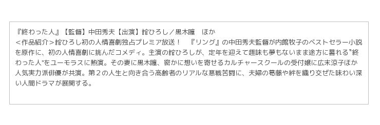BS10 スターチャンネル 3月特集 『終わった人』独占プレミア放送記念