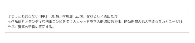 さらに、この放送を記念し、舘ひろしの代表作『あぶない刑事』シリーズの中から初期の傑作3作を放送。