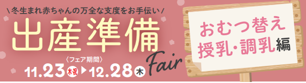 株式会社赤ちゃん本舗(本社:大阪市中央区 https://www.akachan.jp)は、2023年11月23日(木・祝)から12月28日(木)まで、『出産準備Fair』を全国のアカチャンホンポとオンラインショップ(https://shop.akachan.jp)で開催いたします。