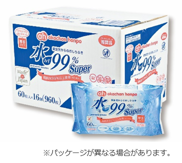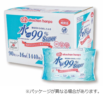 アカチャンホンポのロングセラー商品「水99%Superシリーズ」。