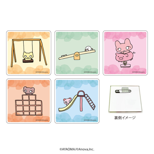カバンやポーチをカラフルに彩ってくれる、5.3×5.3cmのアクリル製バッジ。会社や学校などで、いや〜なことがあったときも、ねこちゃん・ベビーマキシマム・うさちゃん・たぬちゃん・ピンクくまちゃんがつかれた心にそっと寄り添ってくれます。