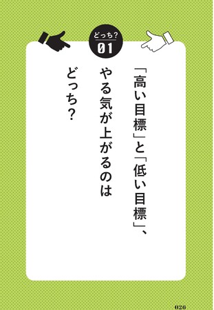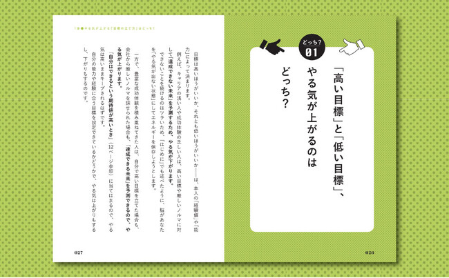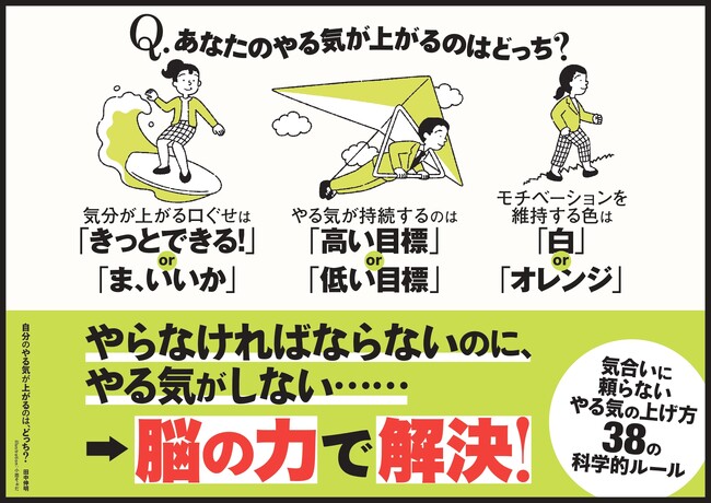 本書では、やる気が上がる行動の選択肢を2つ提示し、脳科学の観点から「どちらが正しいか」をお伝えします。クイズに答えるだけで知識が身につくので、「本書を読み進めるためのやる気」がない人にも安心です。