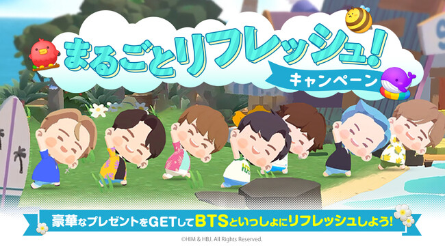 「BTSIsland:インザソム」は自宅でのんびり楽しめるパズルゲームとなっており、今後プレイヤーの皆様が「BTSIsland:インザソム」を通じてさらにリフレッシュしていただくために<まるごとリフレッシュ!キャンペーン>を開始します。