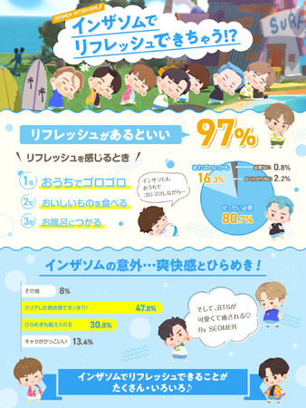 「BTS Island:インザソム」公式X(Twitter)のインタビューを通じて、97%が「リフレッシュがあるといい」と回答しました。