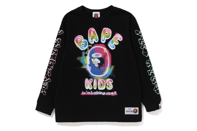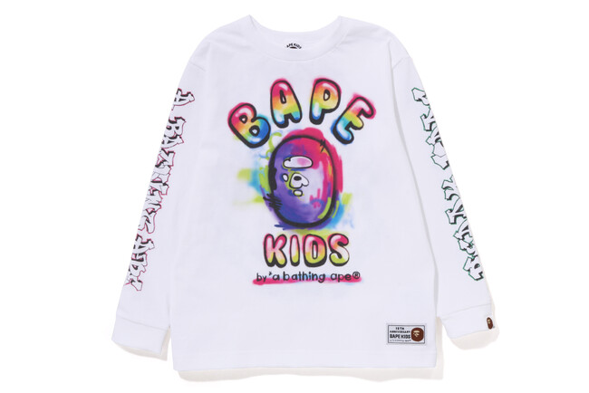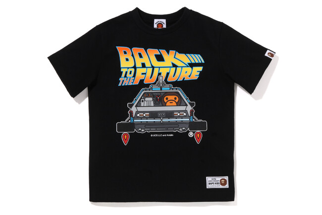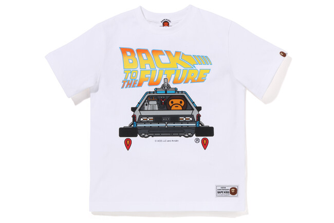 今回は、過去に「BAPE(R)」メンズと「READYMADE」のコラボレーションで発売されたアイテムをリデザイン。さらに「BAPE KIDS(R)?」初のトリプルコラボとして、SF映画の金字塔『バックトゥーザフューチャー』のグラフィックが描かれたTシャツがリリースされるなど、アニバーサリーにふさわしい豪華なコラボレーションになっています。