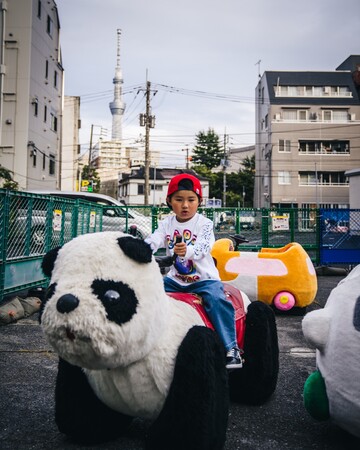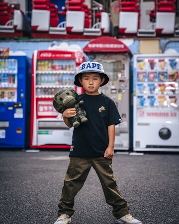 今回のLOOKBOOKでは、これまでも度々「BAPE(R)」のビジュアルを撮影してきたフォトグラファーの「RK」が担当。撮影は「浅草花やしき」で敢行し、グラフィカルなアイテムがカラフルなロケーションに映える、RKらしい唯一無二のビジュアルとなっています。さらに、モデルには現在メディアで注目されている若干5歳のスケーター「石塚吏太」を起用しました。