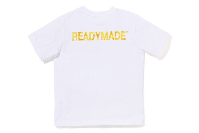 21SSのメンズでのコラボレーションで発売したパックTの色変えアイテムです(今回はパックTでの発売ではありません)。バックのロゴプリントは「BAPE KIDS」のシグネチャーカラーであるイエローをCAMOに施し、アイコニックな仕上がりに。フロントワッペンにはAPEHEADとハチ。ハチの羽根には「READYMADE」と入っており、細部までこだわりが見える一枚となっています。