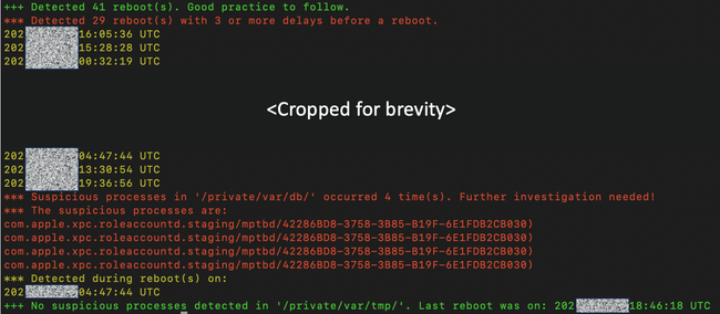 Pegasusに感染したデバイスの「Shutdown.log」を解析したところ、ReignやPredatorなどのほかのiOSマルウェアの感染時に見られるパスと同じ「/private/var/db/」を確認しました。このパスから発生するマルウェアの実行は、これまでに確認された全ての感染で一貫していることから、「Shutdown.log」はこれらのマルウェアファミリーによる感染を特定できる可能性があります。