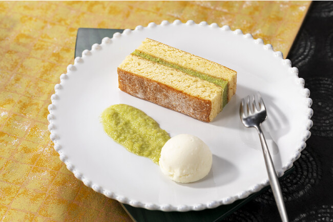 八芳園パティシエが手掛ける自家製カステラで、上品な甘さに仕上げたずんだ餡を挟みました。カステラのふわふわとした食感とずんだ餡の優しい甘みは、どこか昔懐かしい味わいをお楽しみいただけます。ずんだソースとバニラアイスとともにお召し上がりください。