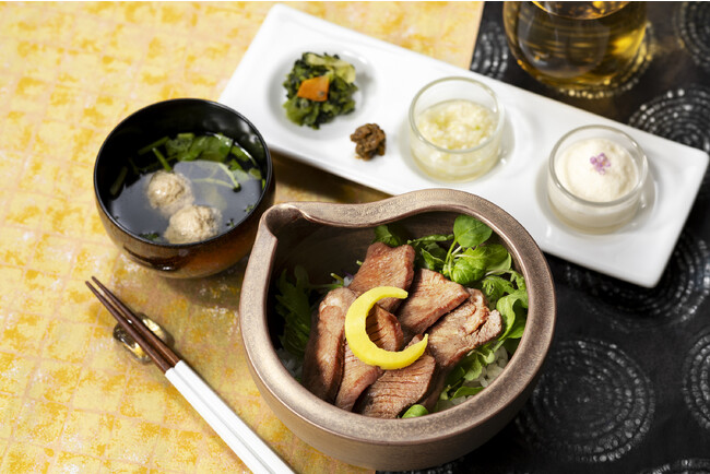仙台の名物のひとつといえば牛タン。低温でじっくりと調理し、厚みがありながらも柔らかく仕上げた旨味が凝縮された牛タンに、宮城のブランド米「だて正夢」を合わせました。お好みの薬味でアレンジも楽しみながら、仙台せりと地鶏のつみれ汁とともに仙台の美味しいものを詰め込んだ「仙台牛タン御膳」をお楽しみください。