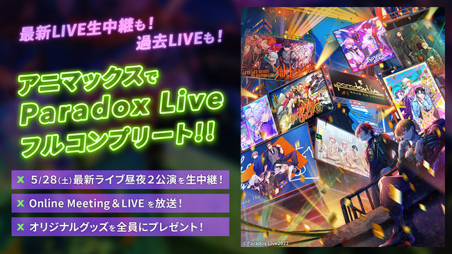 アニメ専門チャンネル<アニマックス>は、2022年5月28日(土) パシフィコ横浜で開催する「Paradox Live Dope Show」2ndリアルライブを昼夜2公演【生中継】します!