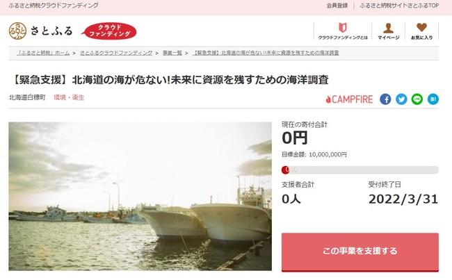 事業名:【緊急支援】北海道の海が危ない!未来に資源を残すための海洋調査