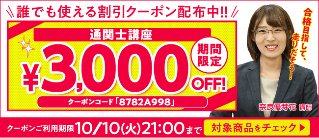 【期間限定】通関士講座 誰でも使えるクーポン 配布中!
