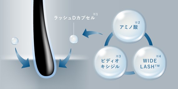 ※1 保湿・ハリコシ成分:(ラッシュDカプセル)白金、ビオチノイルトリペプチド-1、パンテノール、グリセリン、ピロリジニルジアミノピリミジンオキシド、シスチン、グルタミン酸