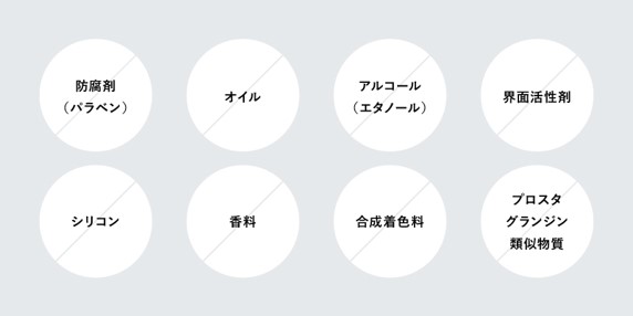 日本国内工場で製造。防腐剤(パラベン)、オイル、アルコール(エタノール)、界面活性剤、シリコン、香料、合成着色料、ブロスタグランジン類似物質不使用。さらに、アレルギーテスト・スティンギングテスト・敏感肌パッチテストも実施済み※7です。
