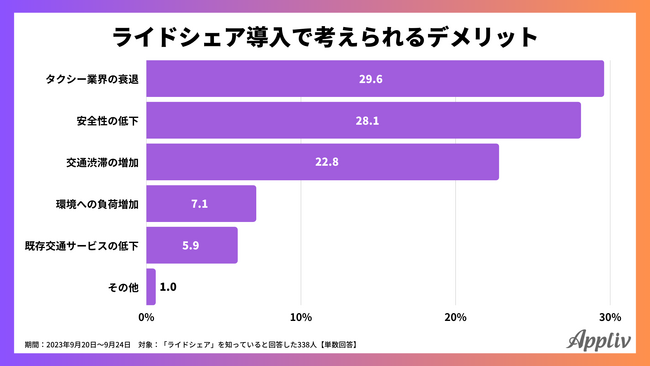 ライドシェア導入のデメリットは「タクシー業界の衰退」、「安全性の低下」が上位に