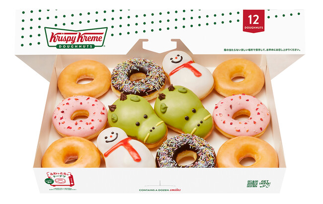 幸運を運ぶドラゴン カスタード、笑顔を呼び寄せるハッピー ストロベリー リング、冬の人気者チョコレート スノーマン。定番のチョコ スプリンクル、オリジナル・グレーズド(R)が新しいラッキーを届けます。大切な家族や友達と新年をお祝いする12個入りです。