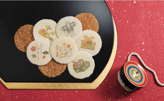 「良き年になりますように」の思いを込めてめでたづくしのえびせんべいです。