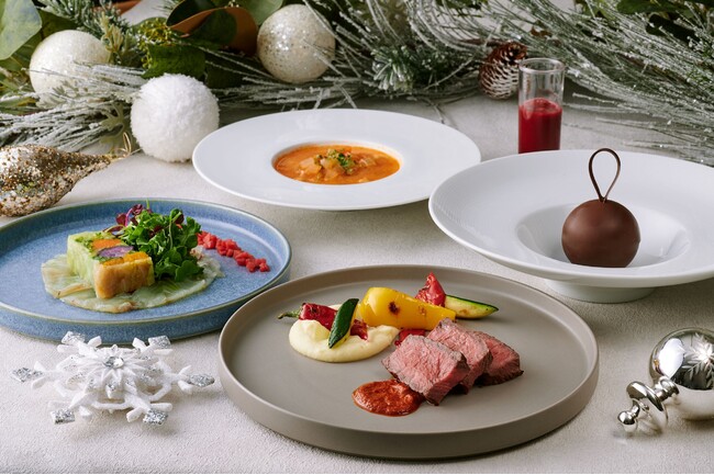 クリスマスカラーで仕上げたサーモンのミキュイや、スパイシーな香りでフランスで食前酒として愛される“パスティス”で香り付けした大人の味わいの平目のグラチネ、シェフ自慢の和牛のローストビーフなど、クリスマスにふさわしい華やかなディナーコースをご用意いたしました。