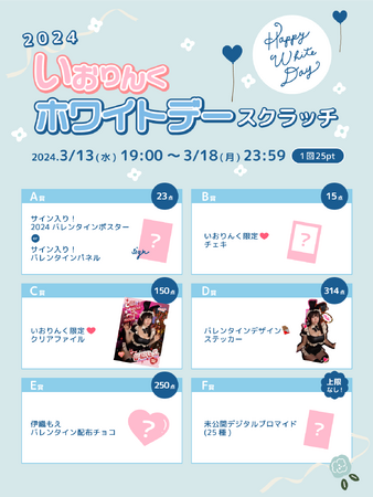 そしてこの度 3/13〜3/18の6日間、公式ファンコミュニティ『いおりんく』にて「ホワイトデースクラッチ企画」の開催が決定しました!