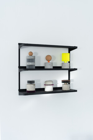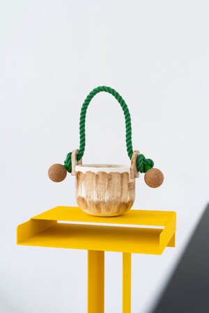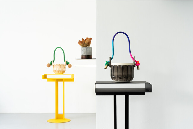 シグネチャーであるロープを使ったセラミックバッグシリーズや、新作のフラワーベース、1点もののプロトタイプが並びます。
