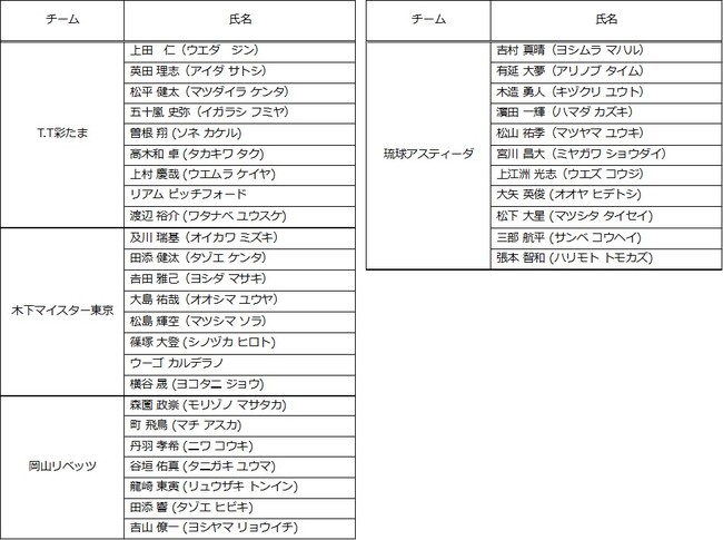 2022-2023シーズン 登録完了選手(2022年7月29日付)