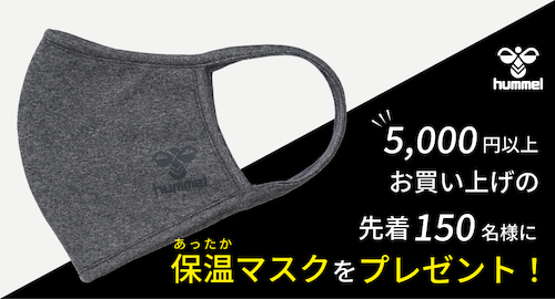 1度のご購入で5,000円(税込)以上お買い上げの先着150名様に「ヒュンメル保温(あったか)マスク」をプレゼント!