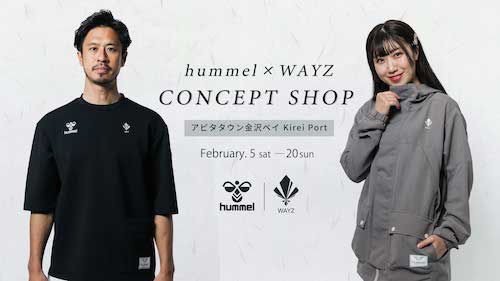 Jリーグに所属するプロサッカークラブ ”ツエーゲン金沢” が展開するアパレルブランド「WAYZ」と、デンマークのライフスタイルスポーツブランド「hummel」のコラボによるコンセプトショップが「アピタタウン金沢ベイ Kirei Port」に、2月5日(土)〜2月20日(日)まで期間限定でオープンします。